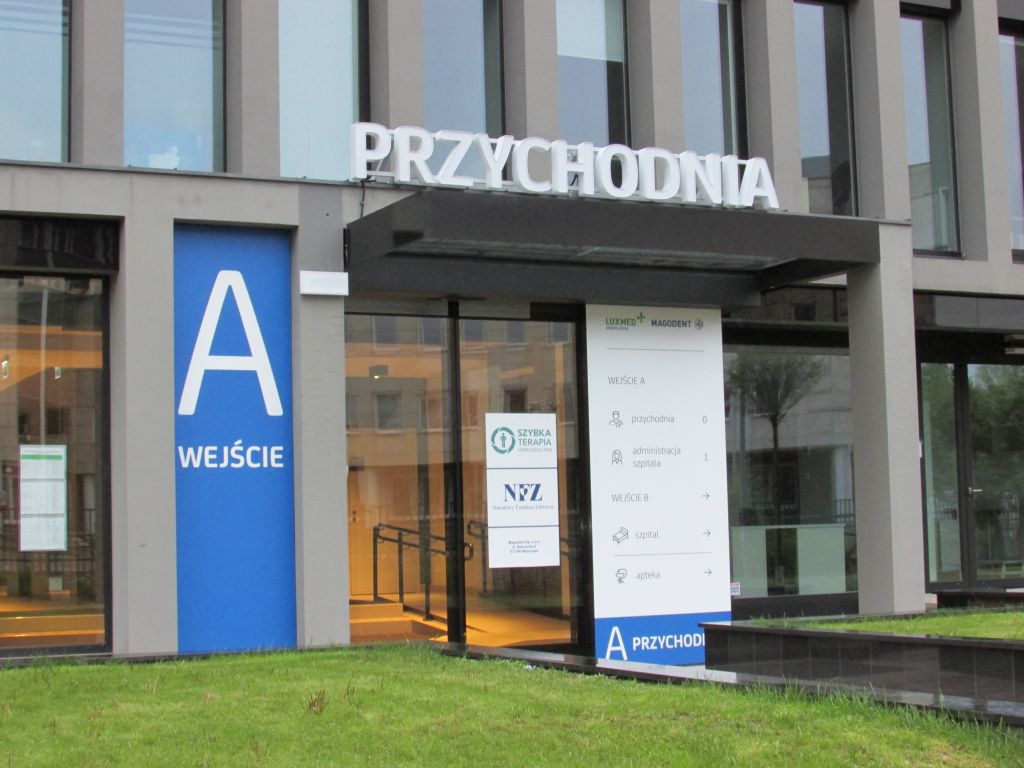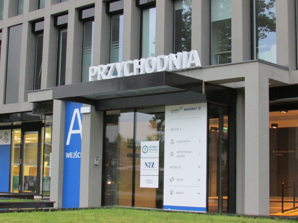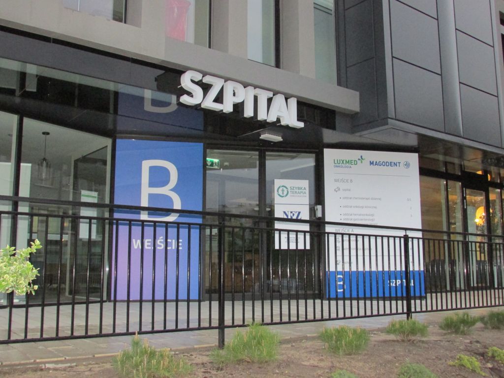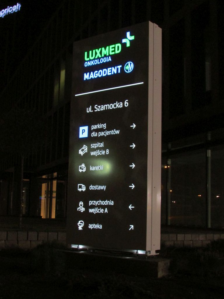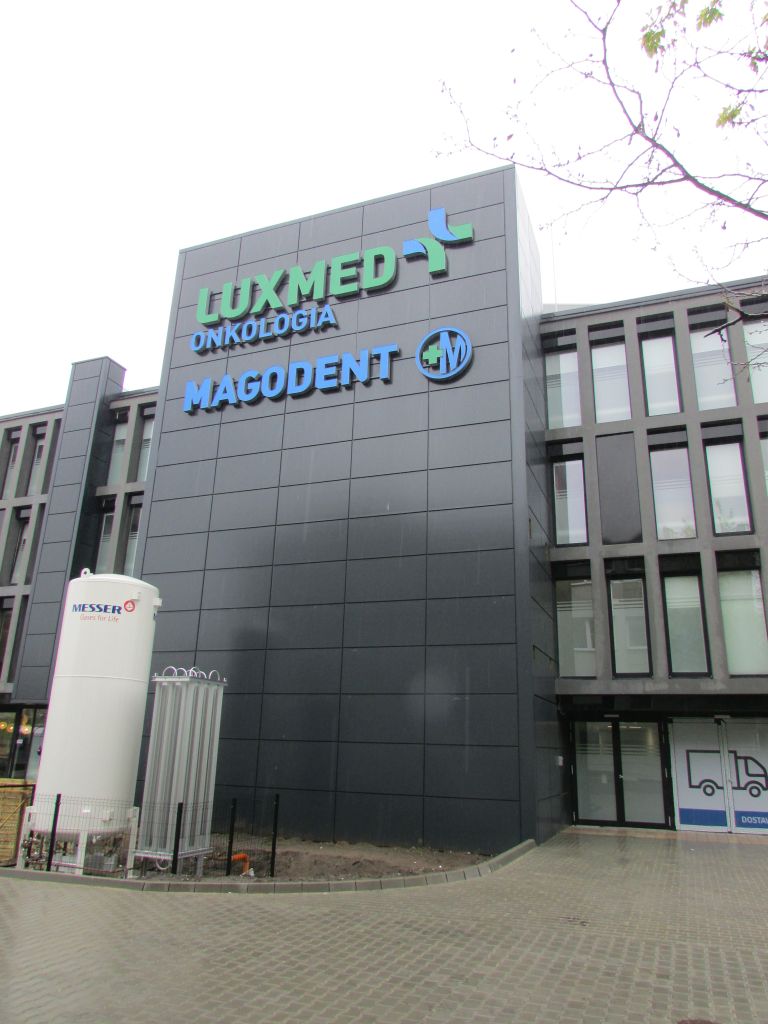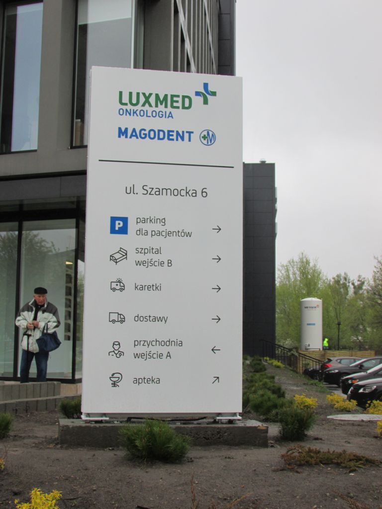 Oznakowanie szpitala LUXMED Magodent Warszawa Elbląska/Szamocka