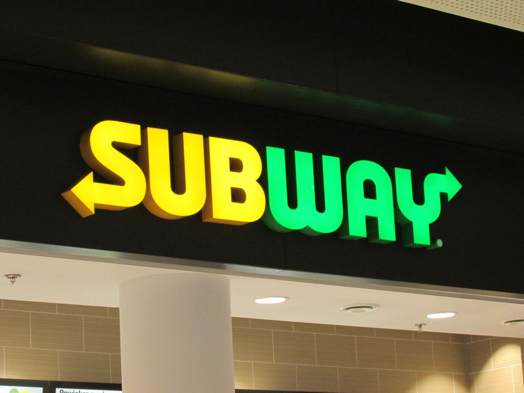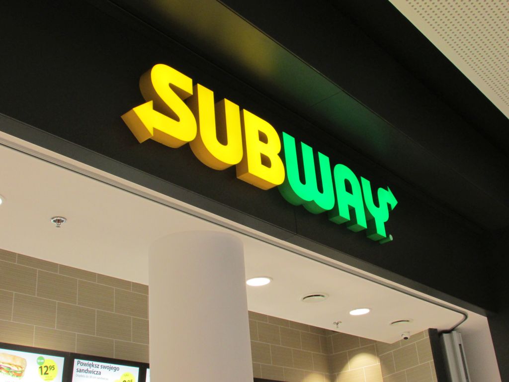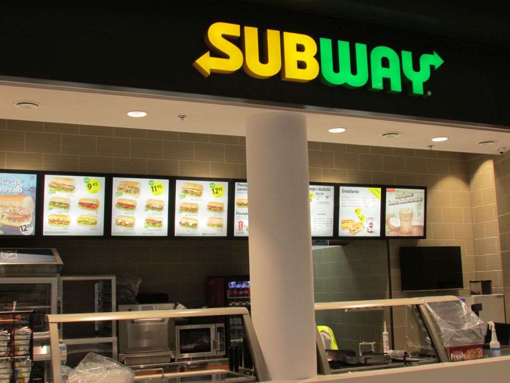Logotyp sieci SUBWAY nad lokalem restauracyjnym w warszawskiej Galerii Północnej