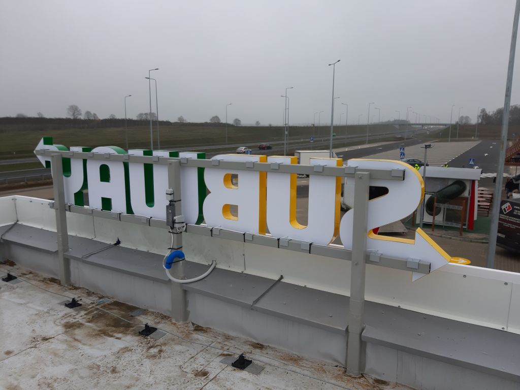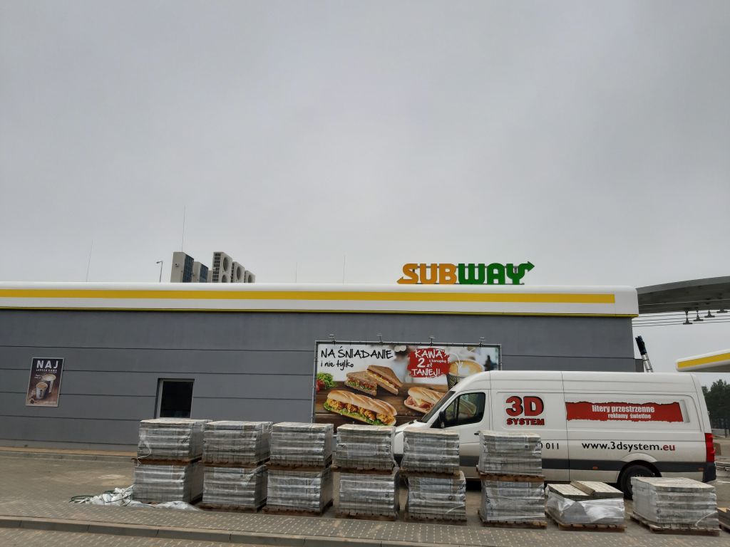piątek, 20 grudzień 2019 14:154 logotypy SUBWAY zamontowane na stacji Lotos w miejscowości Pawliki to kolejna realizacja firmy 3D System dla tej sieci lokali gastronomicznych. Nowe logo SUBWAY obowiązujące od kilkunastu miesięcy zostało wykonane i zamontowane w standardowej, obowiązującej formie czyli liter przestrzennych z taśmy aluminiowej 3D z podświetleniem LED.