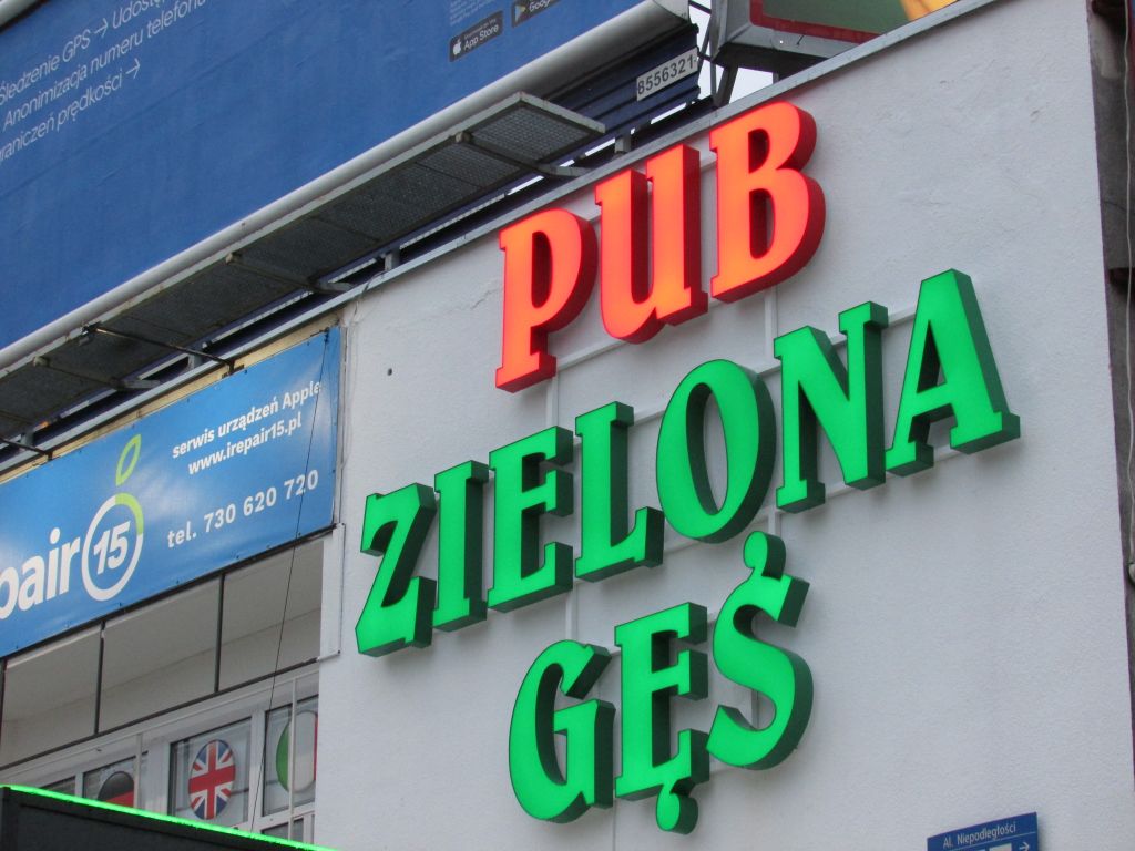 środa, 08 lipiec 2020 14:06Nowe logo na elewacji Pubu ZIELONA GĘŚ na warszawskim Mokotowie to kontynuacja współpracy ze znanym stołecznym lokalem gastronomicznym. Do wykonanego uprzednio liternictwa wewnętrznego i zewnętrznego PIZZA NEOPOLITANA doszła wymiana głównego oznakowania literowego na elewacji lokalu na nowe. Litery PUB ZIELONA GĘŚ zostały wykonane w tradycyjnej technologii liter z konstrukcyjnej taśmy aluminiowej do liter i znaków przestrzennych , podświetlone dedykowanymi modułami LED produkcji koreańskiej z chipami firmy LG z 5-cio letnią gwarancją.